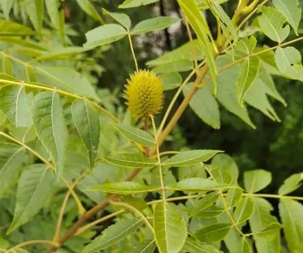 羽状复叶,穗状花序,果序呈球果状,直立枝端经久不落,在落叶阔叶树种中具有特殊的观赏价值,在园林绿化中可作为点缀树种应用。