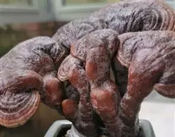 灰树花在不良环境中形成菌核,菌核外形不规则,长块状,表面凹凸不平,棕褐色,坚硬,断面外表3~5毫米呈棕褐色,半木质化,内为白色。子实体由当年菌核的顶端长出。