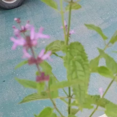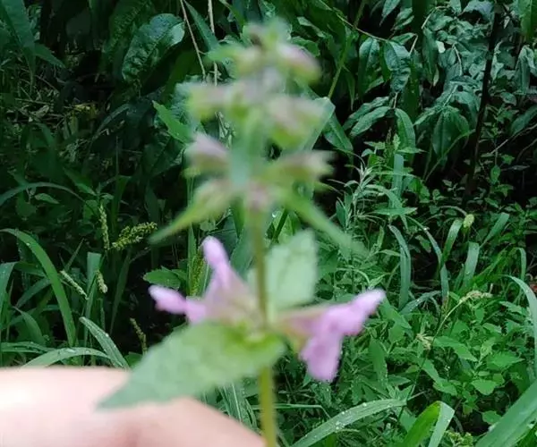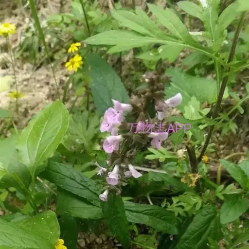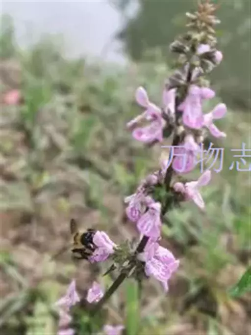 花:轮伞花序6-8花,下部者远离,上部者密集组成长5-13厘米的穗状花序;小苞片刺状,微小,长约1毫米,无毛;花梗短,长约1毫米,疏被微柔毛。花萼钟形,连齿长达7.5毫米,外被具腺微柔毛,肋上杂有疏柔毛,稀毛贴生或近于无毛,内面在齿上疏被微柔毛,余部无毛,10脉,不明显,齿5,等大,三角状披针形,先端具刺尖头,边缘具缘毛。花冠粉红或淡红紫色,长约1.2厘米,冠筒长约6毫米,几不超出于萼,外面无毛,内面在近基部1/3处有微柔毛毛环及在下唇下方喉部有鳞片状微柔毛,前面紧接在毛环上方呈囊状膨大,冠檐二唇形,上唇直立,倒卵圆形,长4毫米,宽2.5毫米,外面被微柔毛,内面无毛,下唇开张,长7毫米,宽6毫米,外面疏被微柔毛,内面无毛,3裂,中裂片最大,近圆形,先端微缺,侧裂片卵圆形。雄蕊4,均延伸至上唇片之下,花丝丝状,先端略增大,被微柔毛,花药卵圆形,2室,室极叉开。花柱丝状,稍超出雄蕊,先端相等2浅裂。花盘平顶。子房黑褐色,无毛。