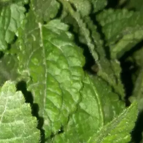叶横切面:表皮细胞1列,外被腺鳞和非腺毛;栅栏细胞类方形,1列,叶肉组织含草酸钙小针晶或小柱晶,长2-18.5μm;主脉维管束外韧型,导管2-3个排列成行。