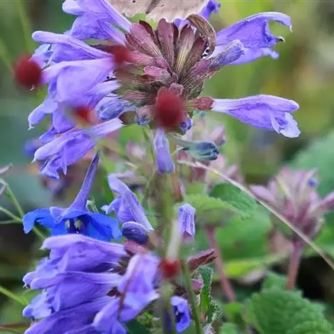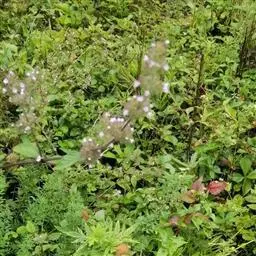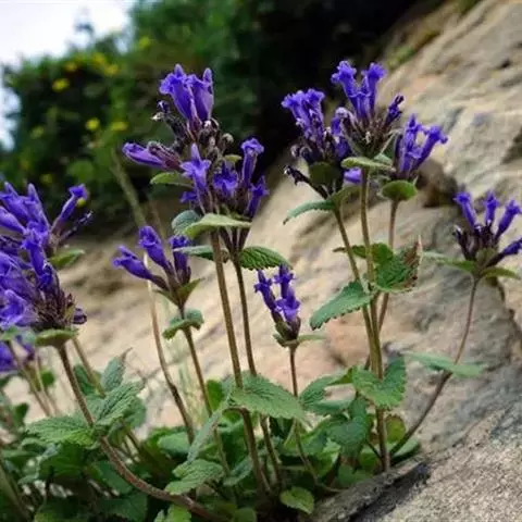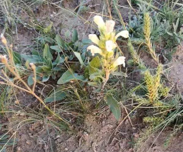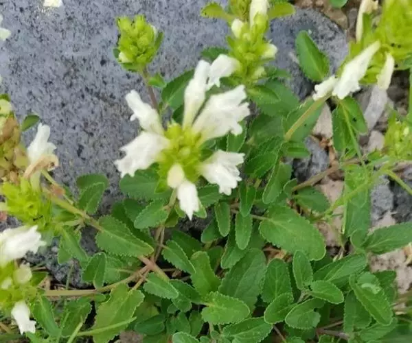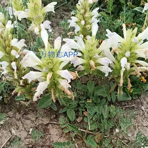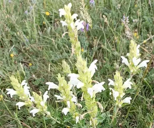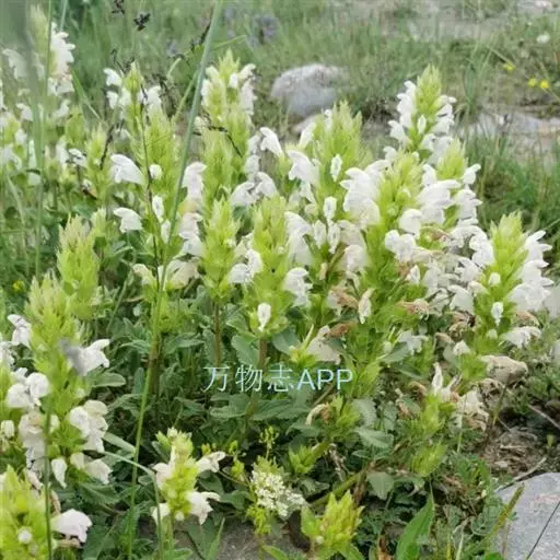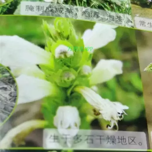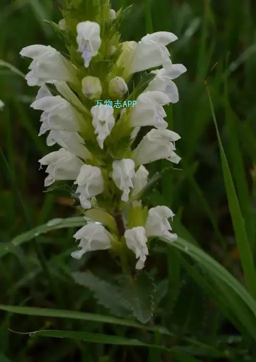 异叶青兰,又名:白花枝子花。多年生草本,高5~40厘米。直根系。茎四棱形,直立或倾斜,多由基部分枝斜上生长,淡紫色或绿色,有倒向短毛。叶对生,有长柄,卵形或卵状披针形,长1~3厘米,宽O.8~1.5厘米,先端钝,基部常为截形、心形或楔形,边缘具圆锯齿。花集生于茎顶呈穗状,每轮通常由4~6花组成;苞片为椭圆状披针形,边缘具齿,齿先端有芒状刺;花萼管状,长约1厘米或过之,无毛,2唇形,5齿裂,下唇短于上唇;花冠近漏斗状,中部以下呈管状,长约2厘米,2唇形,下唇较短,3裂,中裂片有块刻,白色、谈绿色,上唇稍带粉红;雄蕊4,略出于花冠外。小坚果4,黑色,三棱形,稍扁,长2.5毫米,上端截形,下端略锐。花期6~7月。
