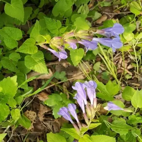 多年生草本,高10—25 cm。茎多数,四棱形,斜升或平卧地面,密被倒向微柔毛。茎下部叶宽卵形至长卵形,长1.5—3.5Cm,宽0.7——2cm,先端钝或圆形,基部心形或截平,边缘具浅圆齿,两面有毛,茎中部叶具等长或短于叶片的叶柄,叶片与茎下部叶同形,茎上部叶变小。