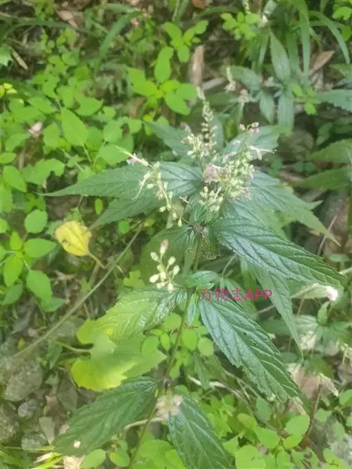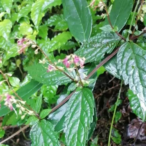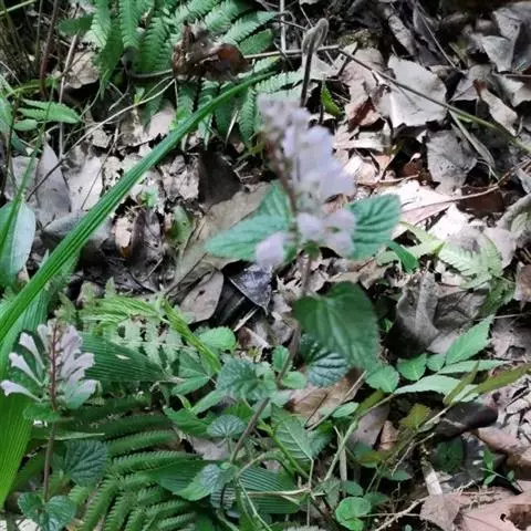 总状花序,腋生者稍短于叶;苞片长约5毫米,宽不及1毫米,早落;花梗长3毫米,无毛。花萼长4.7毫米,宽4.5毫米,萼筒长2毫米,外面无毛,内面喉部具毛环,萼齿5,呈二唇式开张,上唇3齿,中齿特大,圆形,先端急尖,直径3毫米,侧齿卵圆形,小,附于中齿基部的两侧,下唇2齿,披针形,稍高于上唇,缺弯深达下唇1/2而不达喉部。花冠紫红色,长11毫米,外面极疏被微柔毛及淡黄色腺点,内面无毛,冠筒长达8毫米,下部狭细,宽1.2毫米,中部以上宽展,冠檐二唇形,上唇2裂,裂片斜三角状卵形,长约2毫米,裂片间缺弯达上唇1/2,下唇3裂,中裂片卵圆状匙形,长4毫米,宽2.8毫米,先端具短尖,侧裂片长圆形,长2.5毫米,宽1毫米。雄蕊4,细丝状,花药2室,肾形。花柱长超出雄蕊,先端不相等2裂,裂片线状钻形。子房球形。小坚果长1毫米。花期6-8月,果期8-11月。
