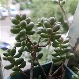 绿玉菊为菊科千里光属多年生肉质植物。植株匍匐或悬垂、向上攀援生长,茎圆柱形,红褐色,叶互生,具叶柄,…