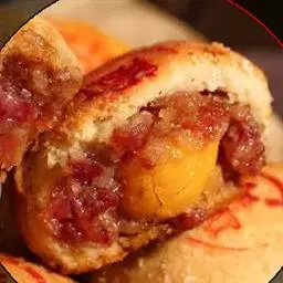 叉烧馅:自制叉烧或者外面买的叉烧切粒,锅里爆香红葱头,洋葱末,加入叉烧粒炒香后加入糖1勺,水2碗,开后,小火慢慢熬制至叉烧软烂,水基本收干,加入少许生粉水收浓稠即可 。
