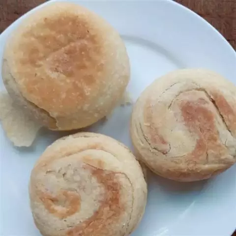 做法:低粉100g,麦粉15g,高粉50g,酥油70g,糖10g,水适量合成面团,擀开按照同一个方向叠被子4次后,冷藏2个小时~