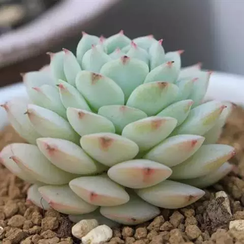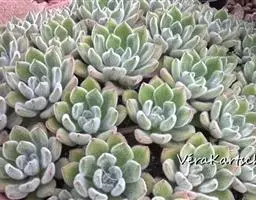 吉娃莲,景天科拟石莲花属,别名:吉娃娃,吉娃莲,植株小型,无茎的莲座叶盘非常紧凑。卵形叶较厚,带小尖,…