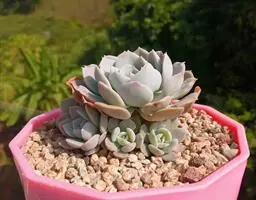 大和锦是景天科拟石莲花属的多肉植物。肉质叶排成紧密的莲座状,广卵形至散三角卵形,背面突起呈龙骨状,…