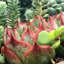 除了夏天要注意通风和节水外,栽培较简便,喜光线充足,不宜在顶部淋水,否则很容易因积水导致叶片腐烂。因为含有绒毛,可以去其他带有绒毛的景天科多肉植物搭档组合,效果惊人。与熊童子、月兔儿等组合在一起。日照充足的情况下,叶片颜色鲜艳夺目! 锦司晃