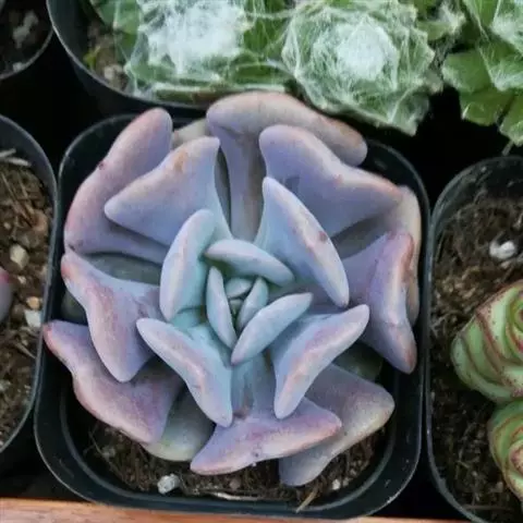 静夜,景天科石莲花属的多肉植物、也称多浆植物,属于较迷你的石莲花,个头非常小,很容易群生,…