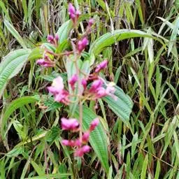 金锦香,别名:杯子草、小背笼、细花包、张天缸、昂天巷子、朝天罐子、细九尺、金香炉、装天甕、马松子、天香炉,拉丁文名:Osbeckia chinensis L.,是野牡丹科、金锦香属直立草本或亚灌木,高20-60厘米;茎四棱形,具紧贴的糙伏毛。叶片坚纸质,线形或线状披针形,极稀卵状披针形,顶端急尖,基部钝或几圆形,全缘,两面被糙伏毛,于背面隆起,细脉不明显;叶柄短或几无,被糙伏毛。头状花序,顶生,蒴果紫红色,卵状球形,4纵裂,宿存萼坛状,外面无毛或具少数刺毛突起。花期7-9月,果期9-11月。图片取自中国植物图库