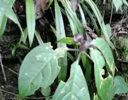 多年生草本。茎上升,细弱,通常不分枝,具3-5节,肉质,无毛,散生紫揭色斑点。叶对生,叶片稍肉质,干时草质,倒卵状披针形,卵状披针形或椭圆状披针形,多少偏斜,长3-15厘米,宽1.2-5厘米,全缘或具疏的波状浅钝齿,基部楔形或狭楔形,通常不对称,上面深绿色,疏生短柔毛,背面绿白色或带紫色,无毛;蠕虫状石细胞少量嵌生于维管束附近的基本组织中:侧脉每侧4-6条;叶柄长2-4厘米,纤细,无毛。