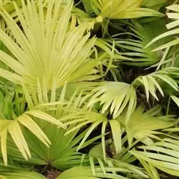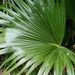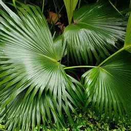 细叶棕竹,灌木,茎细如竹,多数聚生,有网状叶鞘。叶半圆形,掌状深裂,裂片狭长,阔线形,软垂,裂片7…