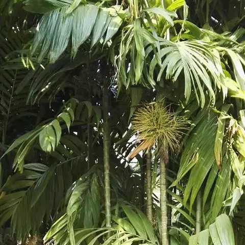 夏威夷椰子是棕榈科金棕属的丛生灌木植物。茎干直立,茎节短而中空,具明显的茎节,…