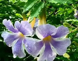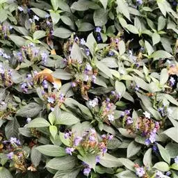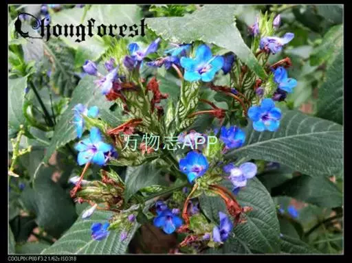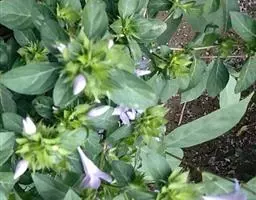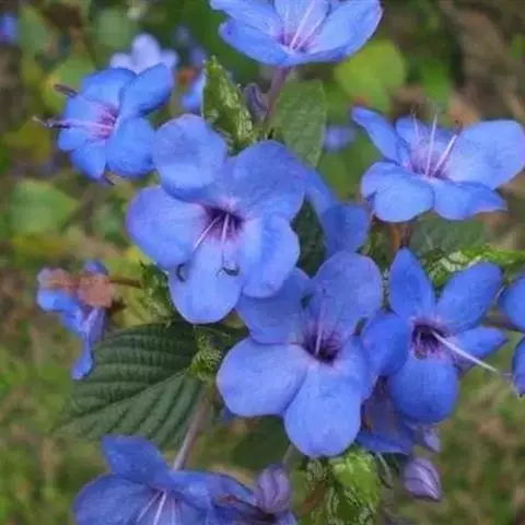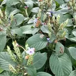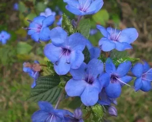 灌木,高可达2米,枝4棱形,无毛或近无毛。叶对生,具叶柄,长1-3厘米;叶片通常卵形,有时椭圆形,长9-20厘米,宽4-8厘米,顶端渐尖或长渐尖,基部圆或宽楔形并下延,两面无毛或近无毛,全缘或有不明显的钝齿,侧脉每边8-10条,连同中肋在叶两面凸起,背面明显。穗状花序顶生和腋生,长3-10厘米,具覆瓦状排列的苞片;苞片大,叶状,白绿色,倒卵形或椭圆形,长1-25厘米,顶端渐尖或短尾尖,具绿色羽状脉,无缘毛;小苞片线状披针形,短于花萼;花萼白色,长6-8毫米;花冠蓝色或白色,高脚碟状,花冠管长约3厘米,外被微柔毛,冠檐裂片5,通常倒卵形,近相等,长约7毫米;雄蕊2枚,稍外露。蒴果长1-1.6厘米,有种子4粒。
