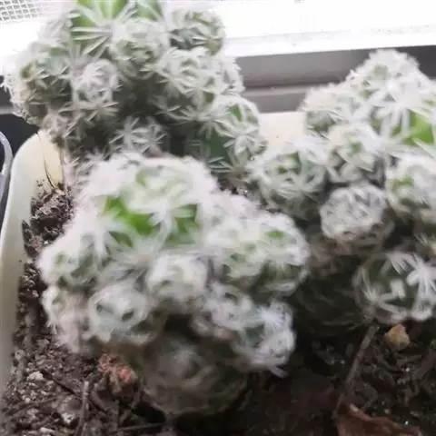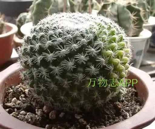 松霞是仙人掌科乳突球属的多年生肉质植物。单个球体小,呈圆筒状,暗绿色,疣状突起小,呈圆形,刺座无毛,…