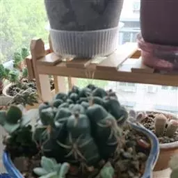 栽培小窍门:在保证光照和温度要求的条件下,用打孔的塑料薄膜做一个筒子罩住整个球体和花盆,创造一个高温高湿的小环境,采用这种办法栽培的金琥球体增大比较快,而且刺会变得很坚硬。.
