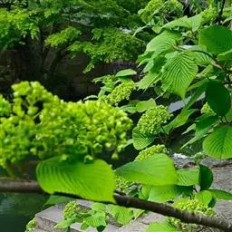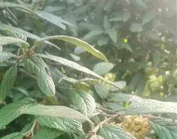 皱叶荚蒾是五福花科荚蒾属的小乔木植物。植株高达4米;叶柄及花序均被由黄白色、黄褐色或红褐色簇状毛组成的厚绒毛;小枝粗壮,稍有棱角;叶革质,卵状矩圆形至卵状披针形;聚伞花序稠密,总花梗粗,四角状,花冠呈现白色,雄蕊高出花冠;果实红色,后变黑色,宽椭圆形,无毛;花期为4-5月;果熟期为9-10月。皱叶荚蒾原产于中国,分布于陕西、湖北、四川及贵州等地。生长于山坡林下或灌丛中,海拔800-2400米。其性喜好阳光,耐半阴,喜温暖,有一定的耐寒性,喜湿润,不耐涝,耐中度盐碱,但在深厚肥沃、排水良好的中性或微酸性沙质土壤中生长更好,耐修剪,生长缓慢。其一般的繁殖方式为播种和扦插繁殖。皱叶荚蒾味苦,性凉。具有清热解毒、凉血止血的功效。可用于湿热痢疾、痈疽疮疖、咳血、吐血、便血、跌打损伤等疾病。皱叶荚蒾给人以郁郁葱葱的景象,全年观叶、春季观花