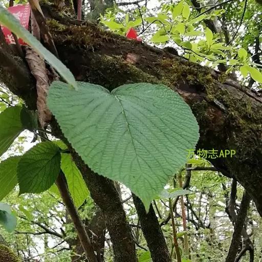 叶纸质,卵形至椭圆状卵形或圆状卵形,长6~13 (~15) 厘米,顶端渐尖或急尖,基部圆形,很少浅心形,边缘有不规则牙齿状尖锯齿,上面无毛或幼时脉上被簇状毛,侧脉6~8对,上面稍凹陷,下面凸起,小脉横列,明显;叶柄长1.5~3 (~4.5) 厘米;托叶钻形,长2~9毫米,基部常贴生于叶柄,有时无托叶。