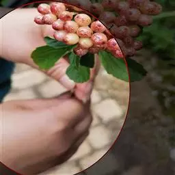 果实红色,后变紫黑色,卵圆形,长8~9毫米;核稍扁,长约7毫米,直径约5毫米,有1条浅背沟和1条深腹沟。