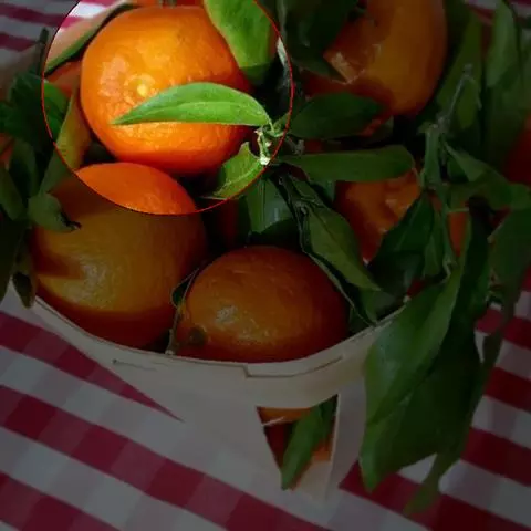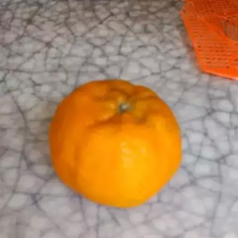 幼果绿色,10~12月成熟后变成朱红色,果实比四季桔大。果形扁圆形,果顶有小脐、凹入。果表面粗糙,油胞大而突出或细密凹入,果皮松软、易剥离。果肉囊瓣肾形,9~10瓣,汁泡较大,果心空。果肉可食用,味甜带酸、柔软化渣,有异味。