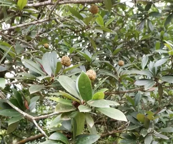 常绿乔木,高20米,胸径达60厘米,树皮灰色,稍粗糙;当年枝无毛,干后暗褐色;芽体卵形,有短柔毛,有多数鳞状苞片。
