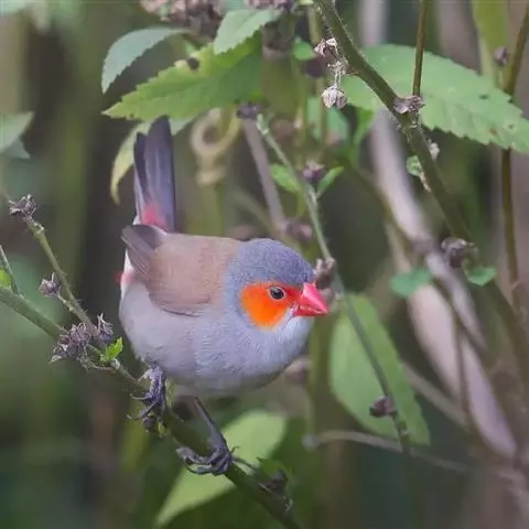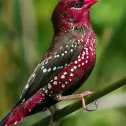 红梅花雀小型鸟类,体长9-10厘米。雄鸟通体朱红色,背、肩、胸等满布白色小斑点,…
