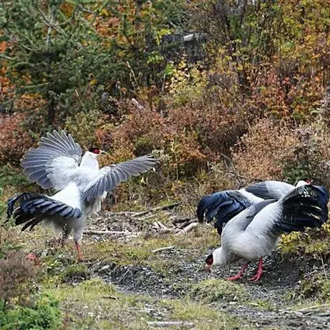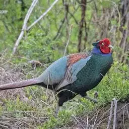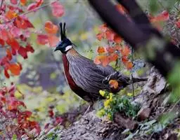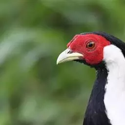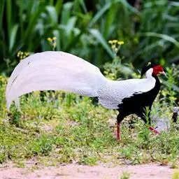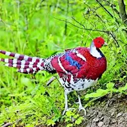白颈长尾雉:大型鸡类,体长81厘米,体型大小和雉鸡相似。雄鸟头灰褐色,颈白色,脸鲜红色,其上后缘有…