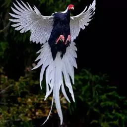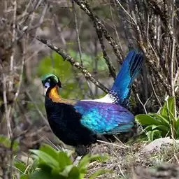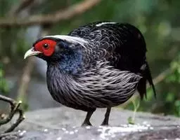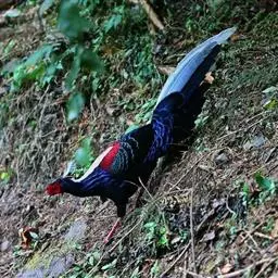 黑长尾雉大型鸡类,体长53~88厘米。雄较雌大。雄鸟通体紫蓝色,脸鲜红色,翅上有一条显著的白色翅斑…