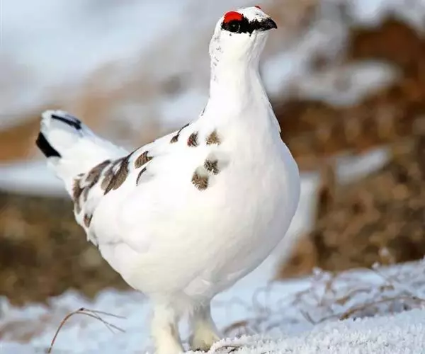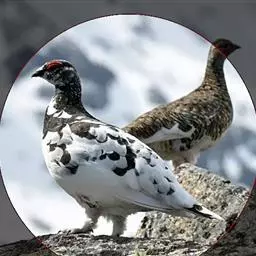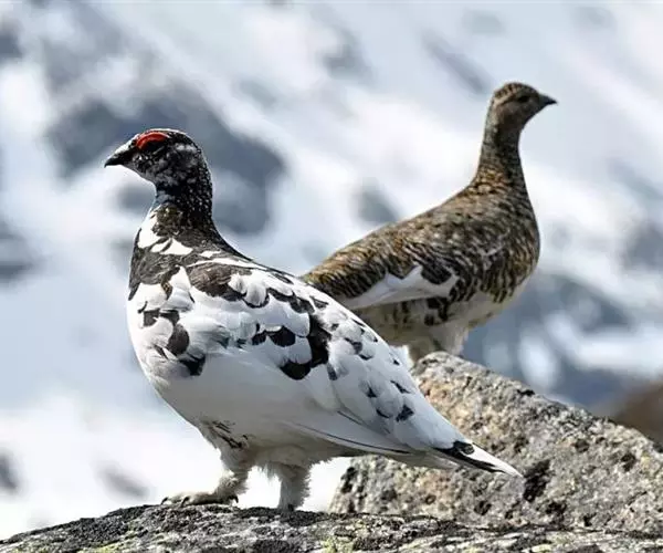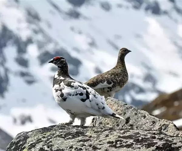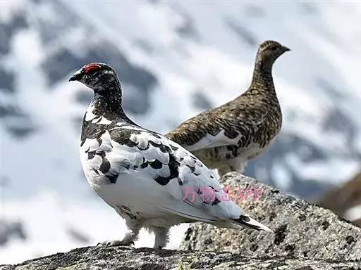 岩雷鸟(学名:Lagopus muta):共有25个亚种。雄鸟体长为38厘米,体重380克;雌鸟体长36厘米,体重450克。嘴较平而弱,爪的前端带有黑色。它的羽色与柳雷鸟很相近,只是夏季的羽色比柳雷鸟浅淡一些,呈皮黄灰色;冬季时,从嘴角到眼睛后面有一条宽的黑纹。眼睛内的虹膜褐色;嘴、爪都是黑色。