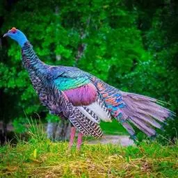 眼斑吐绶鸡:是火鸡科的两种鸟类之一。体型比普通火鸡略小些,体长1米左右,体重2.4-5.4千克,…