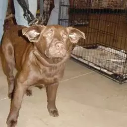 切萨皮克湾寻猎犬头骨宽而圆,中等大小,微平顶。具有聪颖的表情。耳朵较小,适合地位于头上,松弛下垂。…
