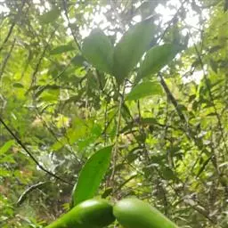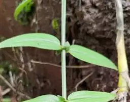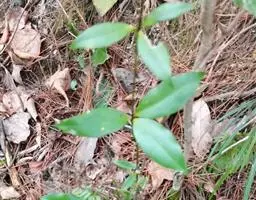 叶纸质,通常3-4枚轮生,有时对生或在枝的上部互生,全缘,倒卵形或倒卵状披针形,端部短尖,基部楔形,无毛或仅在叶背脉上有疏微毛,长6-12厘米,宽2-4厘米;叶脉两面扁平,侧脉每边6-12条;叶柄扁平,长约2-8毫米,基部和腋间均具腺体。