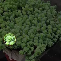 薄雪万年草别名矶小松,景天科景天属多年生草本植物,其细小的蓝绿色棒状叶片环绕生长于茎端,…