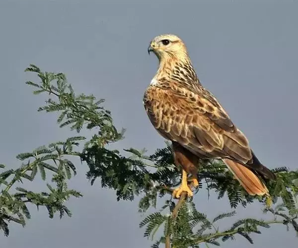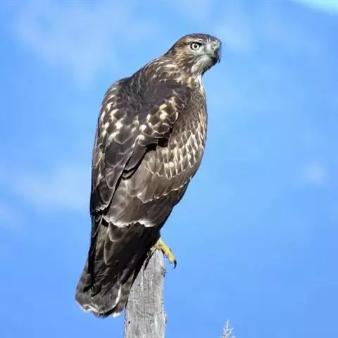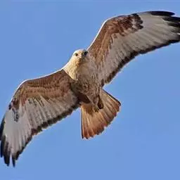 棕尾鵟(学名:Buteo rufinus):是鹰科鵟属的中大型猛禽,体长50-65厘米,体重1280克。成鸟头、颈棕褐色,上体褐色;第2-5枚初级飞羽外翈具横斑;下体棕白色;尾部棕褐色,与其他种类的鵟不同。飞行时,翅上举呈“V”形,翼尖黑色。