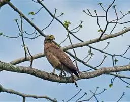 对该巢进行了简易的加固,虽然雏鸟最终顺利出飞,在之后的一次调查中发现该巢已彻底坍塌,据了解是由于一场大风所致。 人为活动的破坏同样对棕尾的巢址有巨大影响,育有一雏另一鸟巢,在调查中发现该株胡杨被人盗伐。而同样是育有三雏的一鸟巢,个体间发育的区别却不明显,身体状况均不错,这可能是与繁殖地的生境条件有关。利用人工巢改善营巢生境的可行性:合适的巢址是稀缺资源,自然分布极不均匀,从调查结果看,有限的天然巢存在不同程度的损坏,甚至影响了繁殖成功率,而旧(老)巢又是猛禽喜欢利用的,因为它表示有繁殖成功的经历,而连年利用旧巢,重量不断增大,不堪重负而坍塌的现象时有发生,因此人类正在实验利用人工巢或半人工巢来改善棕尾鵟的繁殖生境。