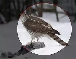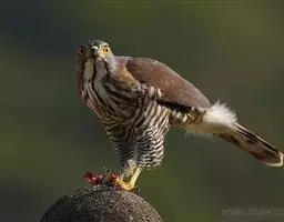 幼雏发育的早期阶段,亲鸟一般把猎物带回巢,撕碎后喂给雏鸟,或放置在巢中,任雏鸟啄食,虽然取食比较困难,但可以看作是一种重要的锻炼。在后期,特别是离巢出飞阶段,亲鸟可将猎物撕成大块喂给雏鸟,甚至在空中抛给雏鸟练习它们的捕食能力。(4周龄雏鸟)