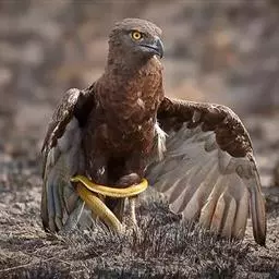 主要以野兔、啮齿动物、蛙、蜥蜴、蛇、雉鸡和其他鸟类与鸟卵等为食,有时也吃死鱼和其他动物尸体。有趣的是,它还可以象家鸡一样在地面上走来走去,寻找甲虫等来充饥。通常站在一走地方等待和观察动物活动,或者在飞翔时紧紧地盯着地面,发现猎物则立刻冲下捕捉。