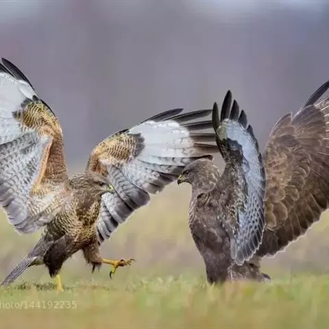 繁殖期为4-7月份。求偶时发出短而尖锐的叫声。营巢于悬崖峭壁间的岩石上或树上。巢主要由枯树枝构成,里面垫有枯草。每窝产卵3-5枚,通常4枚,偶尔也有少至2枚的。卵的颜色为白色或皮黄白色,具黄色或红褐色斑点。棕尾鵟每窝产卵3-5枚,通常3枚,偶见2枚。卵的颜色为白色或皮黄白色,具黄色或红褐色斑;卵的大小为(55-69)厘米×(43-48)厘米。 2003年发现的三个巢,窝卵数分别为3、3、1,明显低于文献记载,分析其原因可能与该年度繁殖区内鼠类处于低密度区有关,通过食性调查观察发现有食物不足的迹象。另外,其中一个巢中的卵虽为一枚,但却是一枚超大的卵,该卵正常孵化出雏鸟一只,其大小与其他雏鸟差别不大。孵化期约为28-31天,估计产卵应在4月中上旬,幼雏留巢期为40-45天,6月下旬至7月上旬飞出。第一枚卵产出后即开始孵卵。孵卵由雌雄亲鸟共同承担。但以雌鸟为主。雏鸟晚成性,孵出后由雌雄亲鸟共同抚养,大约经过40-45天的巢期生活后,雏鸟即能飞翔和离巢。