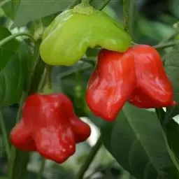 红爪 果实小羊角形,果长5厘米左右,果宽1.0厘米左右,青熟果绿色,红熟果鲜红;果实簇生,朝天,每簇结果5-7个,平均单株结果400个左右,果尖钝圆,前后期果实一致性好,单果重5克左右,辣味浓,单株挂果多,丰产潜力大,耐湿热,抗性强,适合用于脱水加工,干椒或泡辣椒。