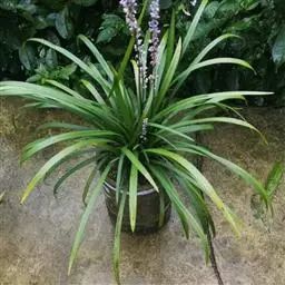 阔叶山麦冬(学名:Liriope muscari (Decne.) L.H.Bailey)是百合科山麦冬属植物。根细长,分枝多,有时局部膨大成纺锤形的小块根,小块根长达3.5厘米,宽约7-8毫米,肉质;根状茎短,木质。叶密集成丛,革质,长25-65厘米,宽1-3.5厘米。花葶通常长于叶,长45-100厘米。种子球形,直径6-7毫米,初期绿色,成熟时变黑紫色。花期7-8月,果期9-11月。