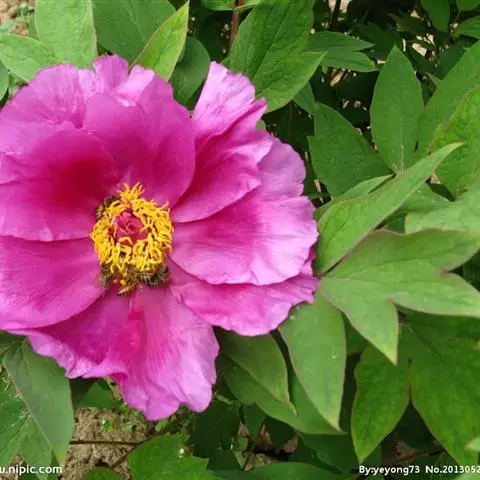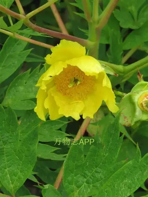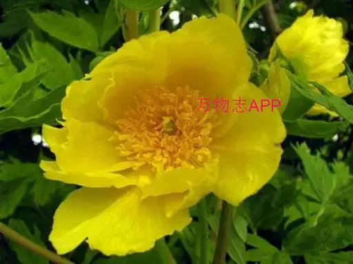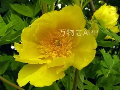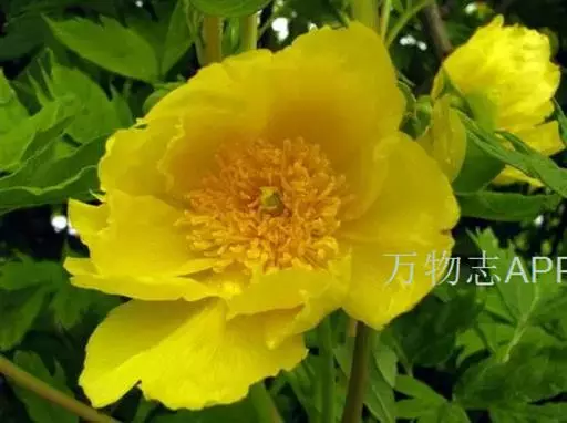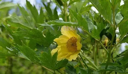 落叶灌木。高1-2.5m,最高可达3.5m。叶 大花黄牡丹 为2回3出复叶,带有美丽的青铜色。花(2)3-4朵生枝顶或叶腋,直径8-12cm;花瓣、花丝与花药均为黄色; 心皮1,少数2。花期5月,果期8-9月。它以植株高大、花朵硕大而显著、心皮数较少区别于滇牡丹P.delavayi,是极珍贵的牡丹观赏、育种材料。