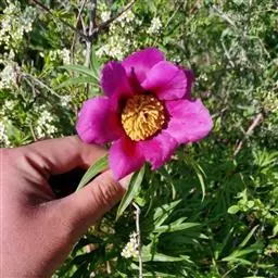 大花黄牡丹属落叶灌木。仅产于米林、林芝,生于海拔2900-3200m的雅鲁藏布江河谷及山坡林缘。它以植株高大、花朵硕大而显著、心皮数较少区别于滇牡丹,是极珍贵的牡丹观赏、育种材料。属于国家二级保护植物。