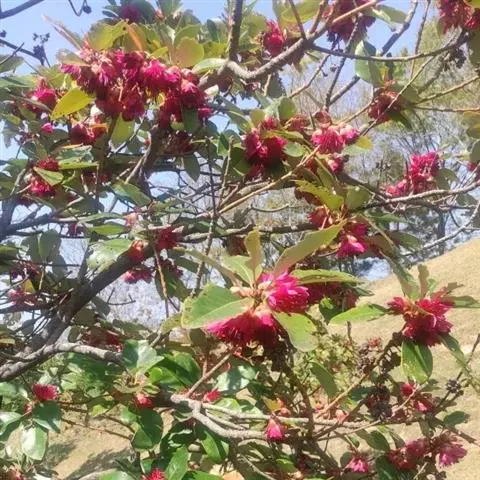 红花荷:金缕梅科红花荷属常绿乔木,高可达12米,嫩枝颇粗壮,叶厚革质,卵形,光滑无毛,有三出脉,叶…