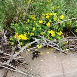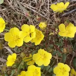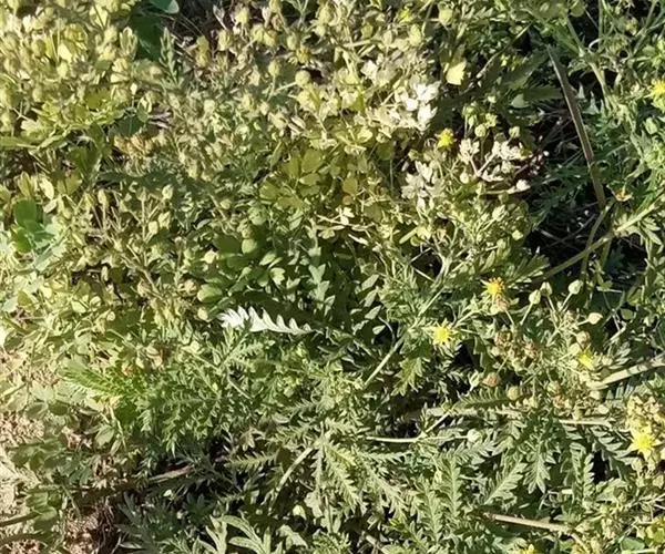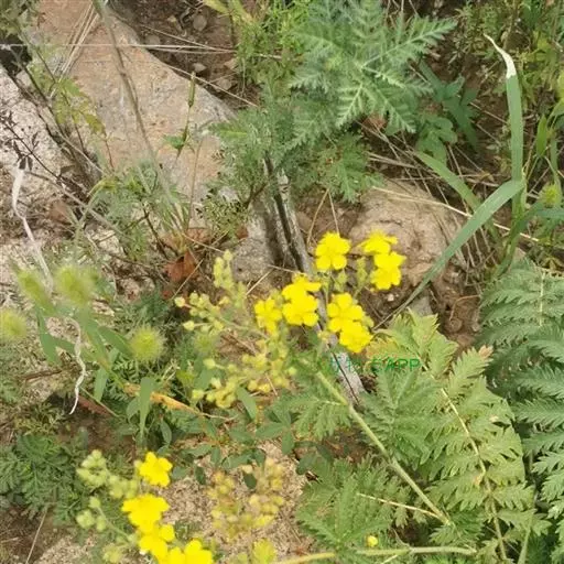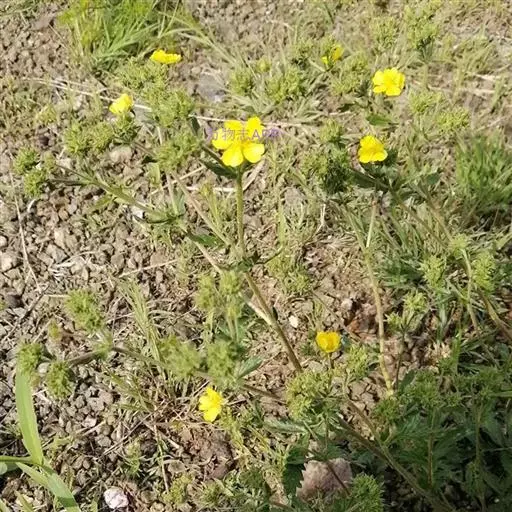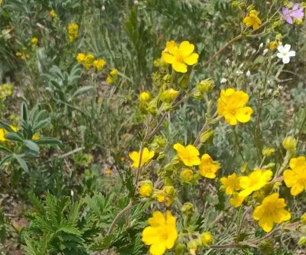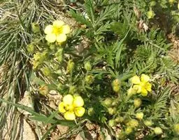 委陵菜(学名:Potentilla chinensis Ser.):多年生草本。根粗壮,圆柱形,稍木质化。花茎直立或上升,高20-70厘米,叶为羽状复叶,有小叶茎生叶托叶草质,绿色,边缘锐裂。伞房状聚伞花序,萼片三角卵形,花瓣黄色,宽倒卵形,顶端微凹,比萼片稍长;花柱近顶生。瘦果卵球形,深褐色,有明显皱纹。花果期4-10月。
