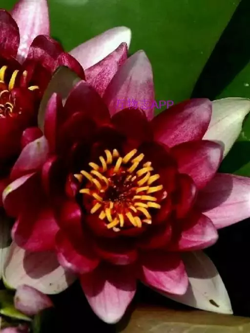 红花睡莲,多年生浮水植物。叶浮于水面,卵形,革质,表面绿色,背面紫红色,幼叶红色,花昼开夜合,浮于…