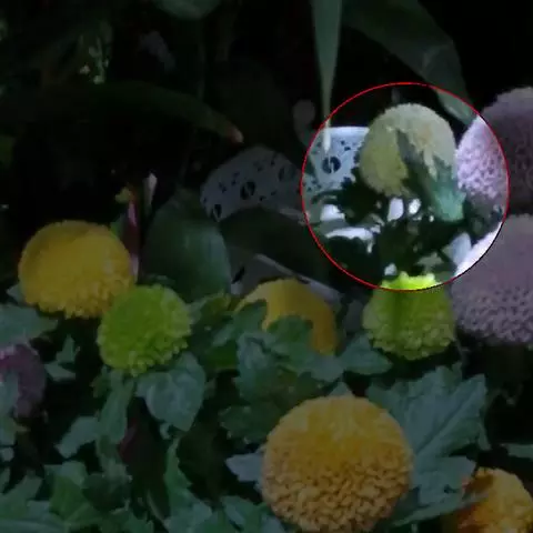 花白色(263.White),星形,直径9-10厘米。萼片4,背面绿色,正面白色。花瓣窄长,边缘内卷,花瓣数38-2。雄蕊金黄色,部分瓣化,雌蕊黄色。 花蕾绿色,桃形。成叶椭圆形,叶表绿色,背面边缘有红褐色斑块,叶裂重叠,叶径15×16c厘米。茎:花柄及叶柄均为绿色,并附着有茸毛。