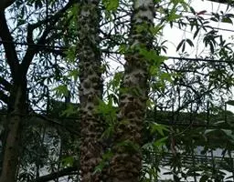 通常少分枝,茎干表面密布明显的皮孔。叶互生,奇数羽状复叶,小叶圆形,茎部心形。伞形花序成圆锥状。