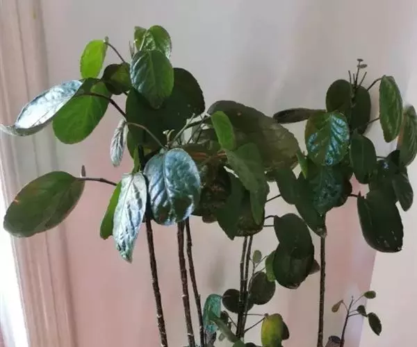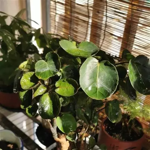 圆叶福禄桐又称圆叶南洋森、圆叶南洋参,为五加科、南洋森属常绿灌木或小乔木,植株多分枝,茎干灰褐色,密布皮孔。枝条柔软,叶互生,3小叶的羽状复叶或单叶,小叶宽卵形或近圆形,基部心形,边缘有细锯齿,叶面绿色。
