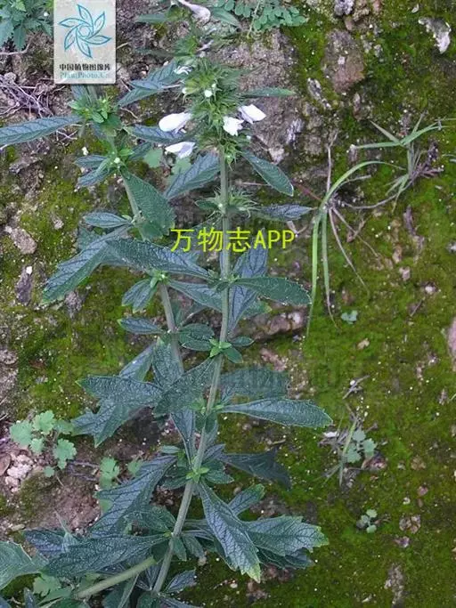 茎直立,高60-100厘米,单一,通常在茎的上部成对地分枝,分枝或短或长,均能育,茎及分枝钝四棱形,明显具槽,密被贴生倒向的微柔毛,在节间上尤为密集,上部具花序。